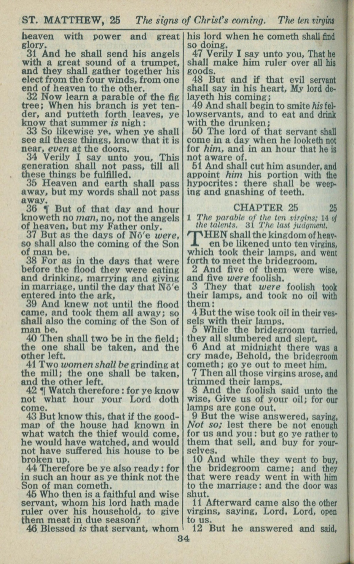 1946年King James Version 马太福音 24 章 31 节到 25 章 12 节
