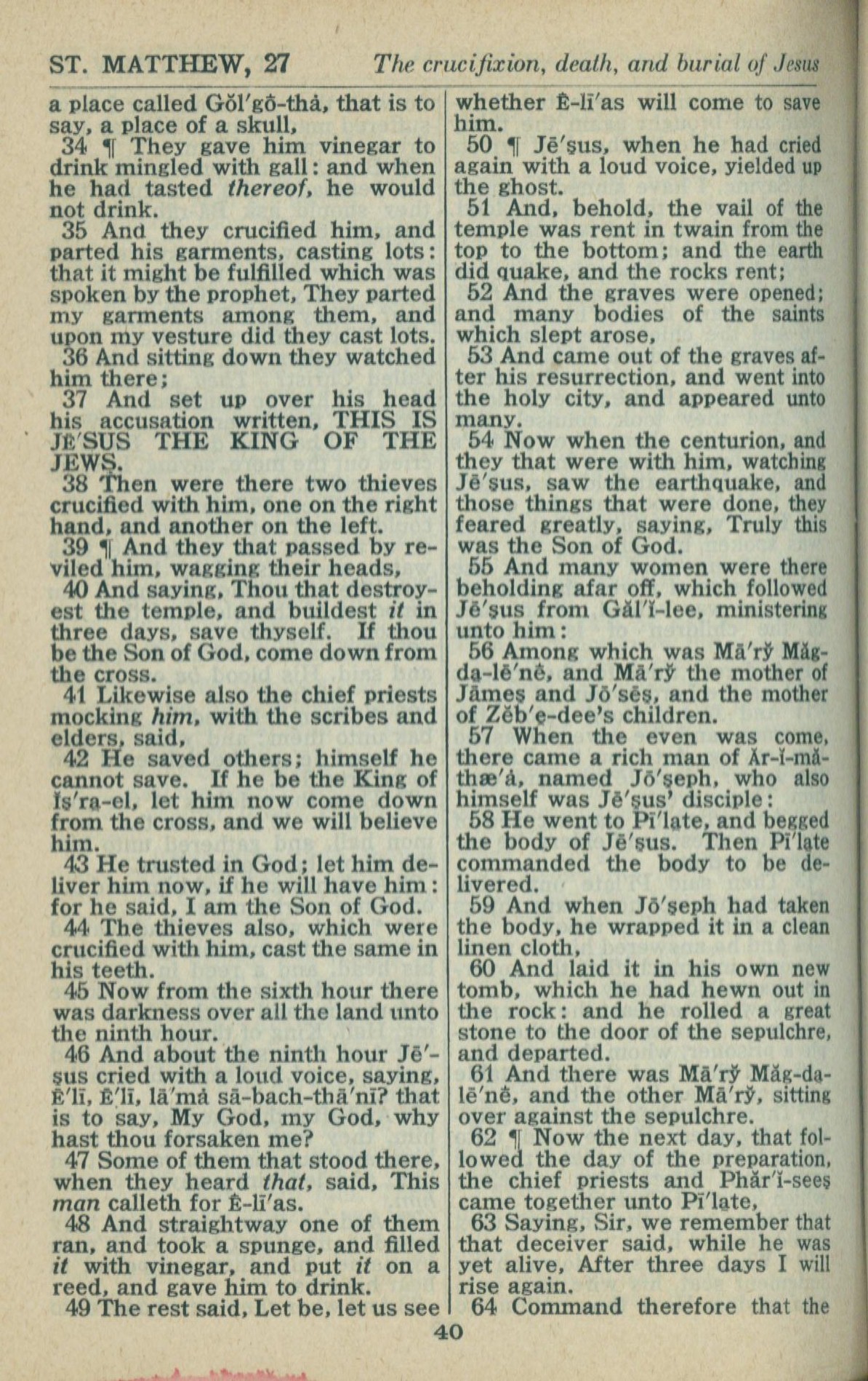 1946年King James Version 马太福音 27 章 34 节到 27 章 64 节