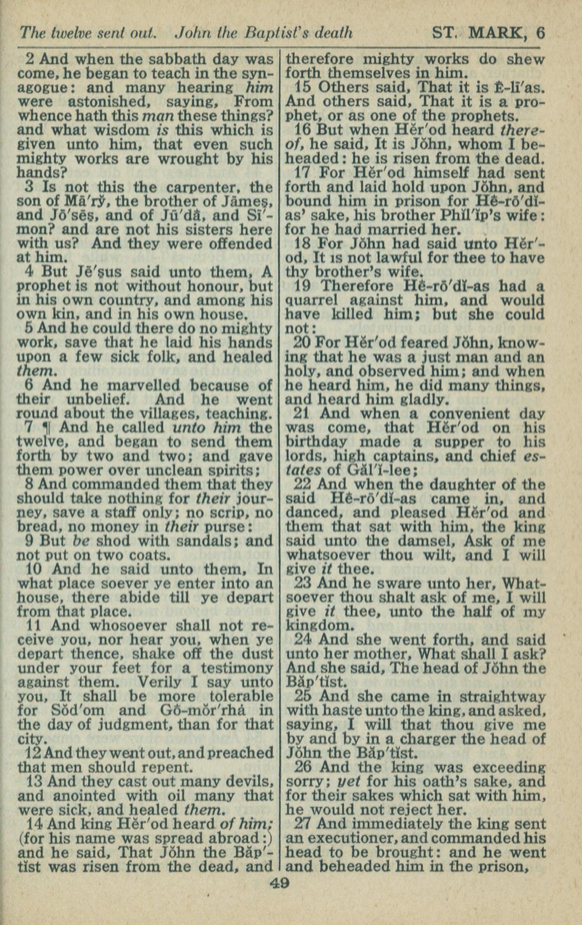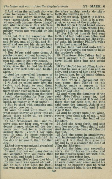 1946年King James Version 马可福音 6 章 2 节到 6 章 27 节