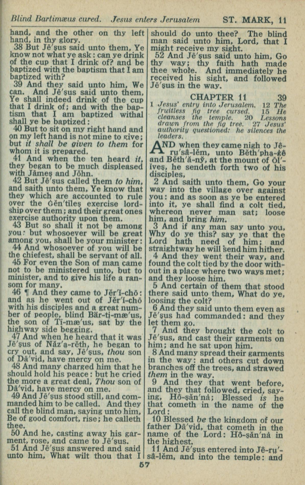 1946年King James Version 马可福音 10 章 38 节到 11 章 11 节