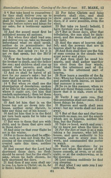 1946年King James Version 马可福音 13 章 9 节到 13 章 37 节