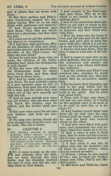 1946年King James Version 路加福音 5 章 30 节到 6 章 15 节