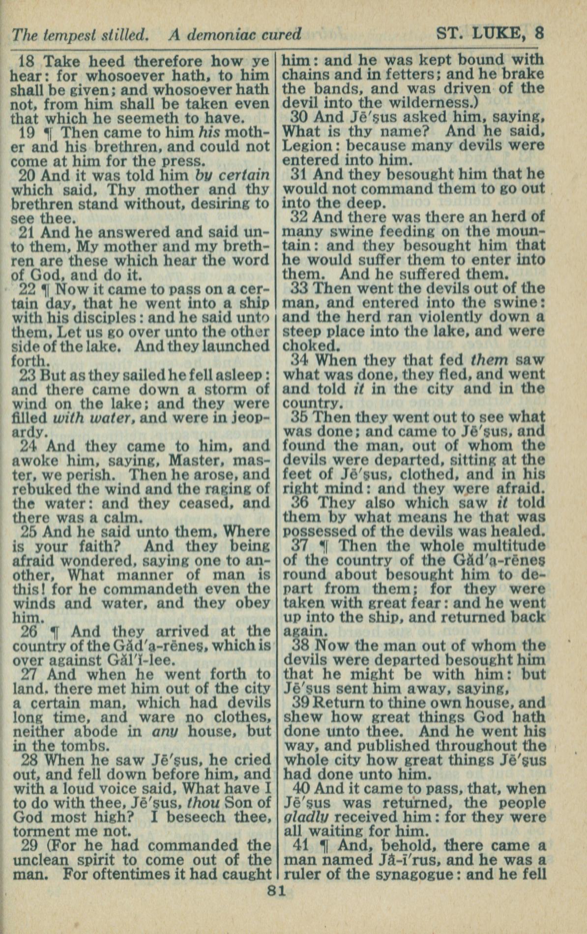 1946年King James Version 路加福音 8 章 18 节到 8 章 41 节