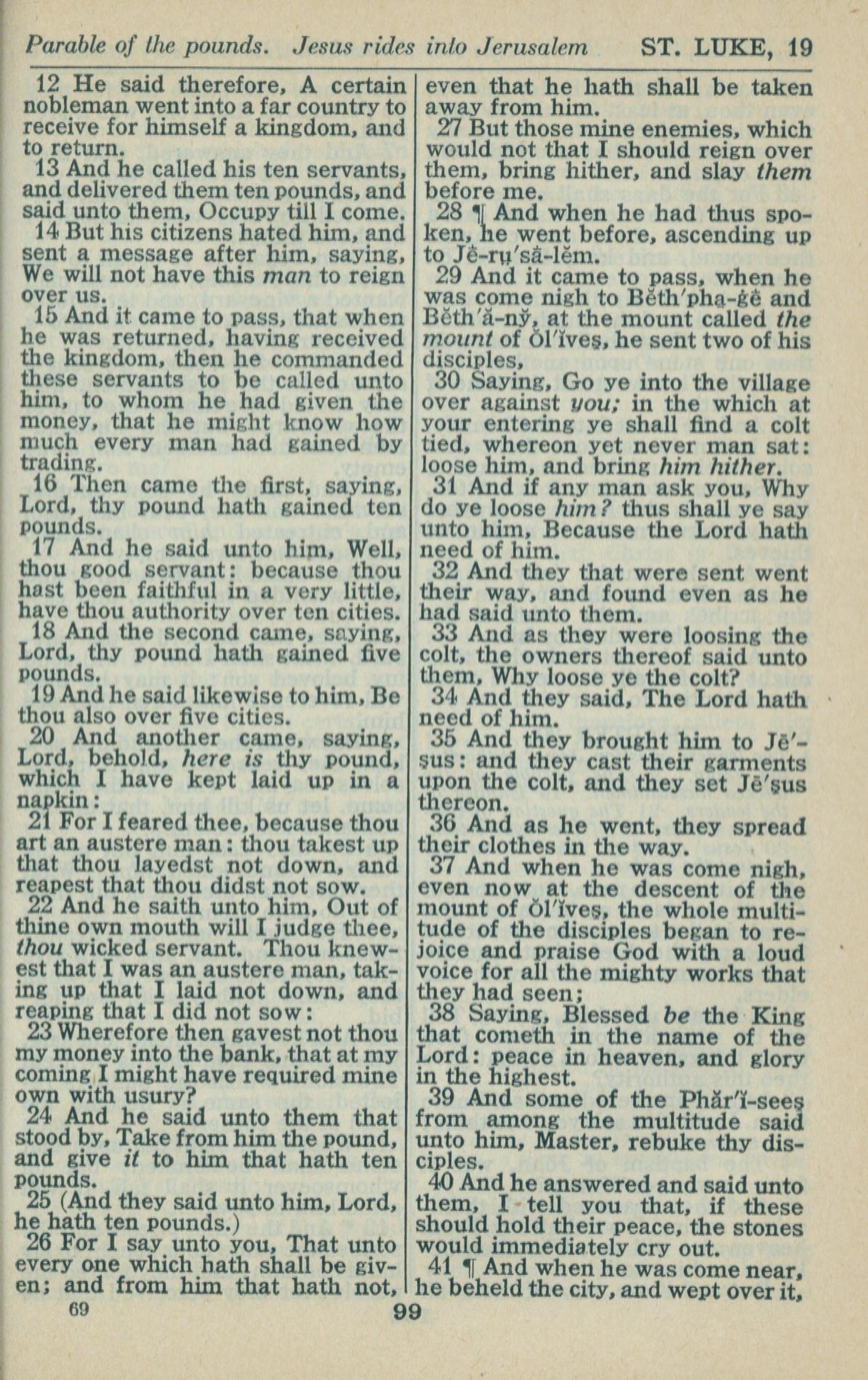1946年King James Version 路加福音 19 章 12 节到 19 章 41 节