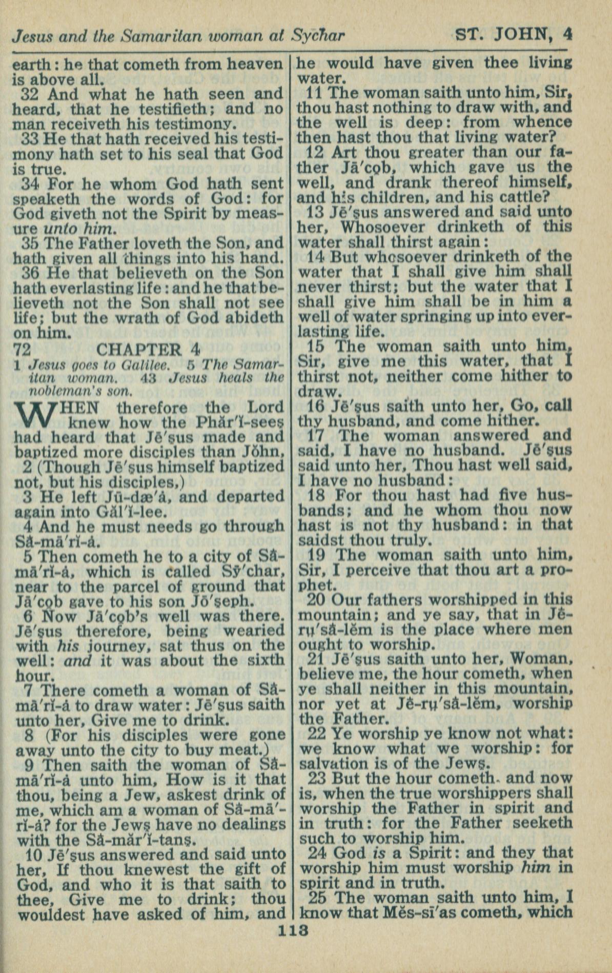 1946年King James Version 约翰福音 3 章 32 节到 4 章 25 节