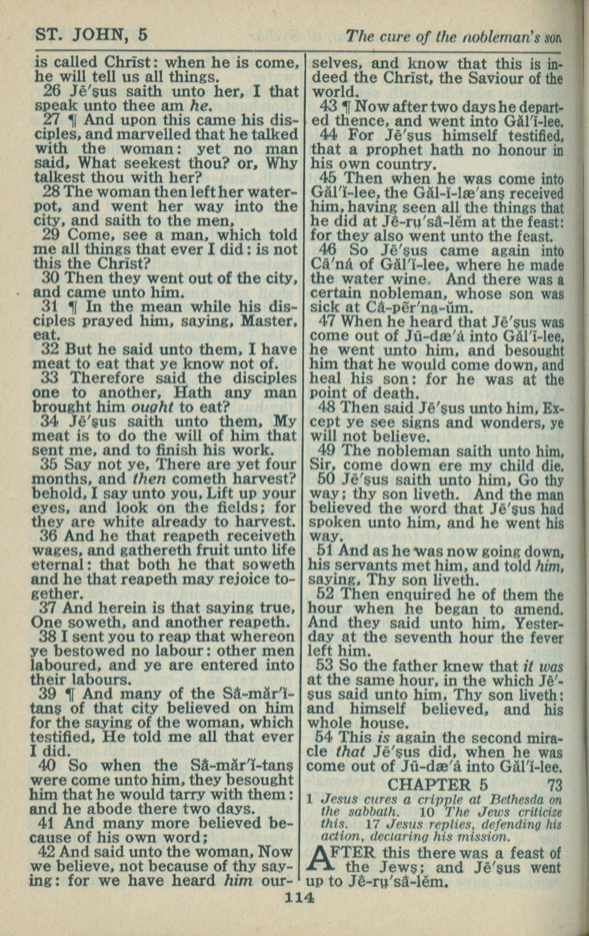 1946年King James Version 约翰福音 4 章 26 节到 5 章 1 节