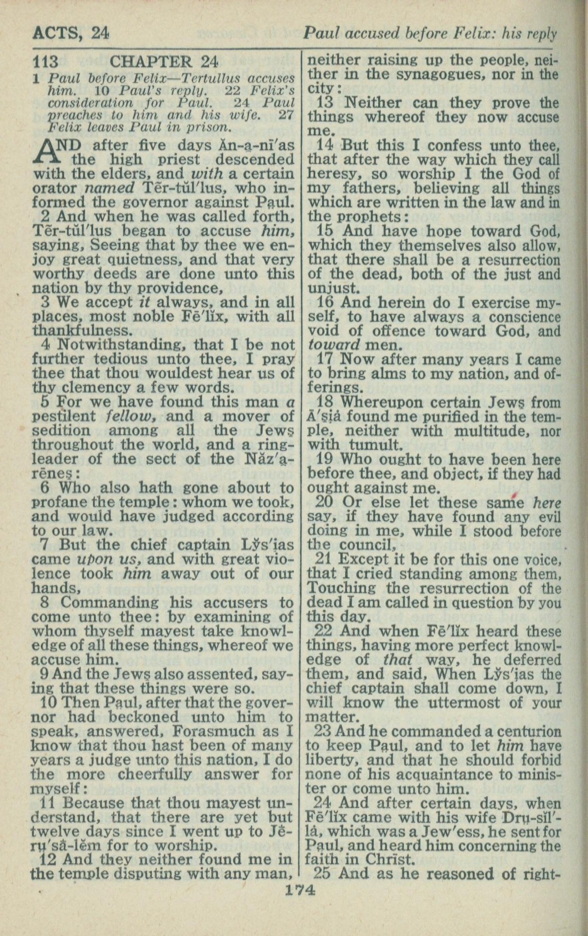 1946年King James Version 使徒行传 24 章 1 节到 24 章 25 节