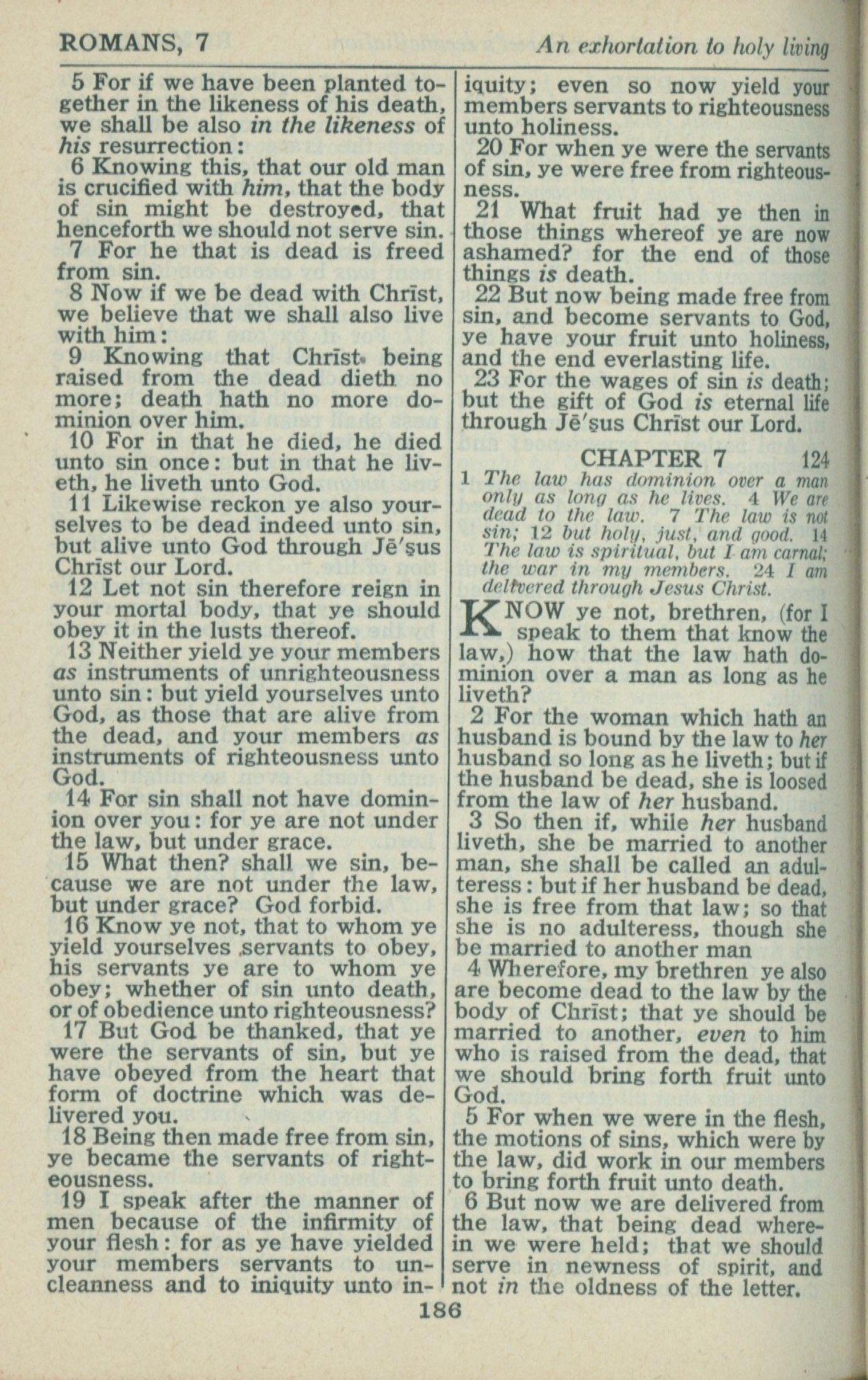 1946年King James Version 罗马书 6 章 5 节到 7 章 6 节
