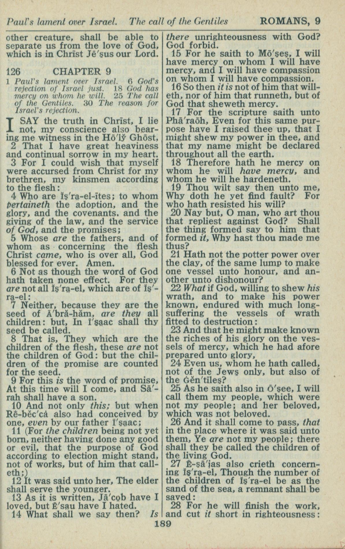 1946年King James Version 罗马书 9 章 1 节到 9 章 28 节