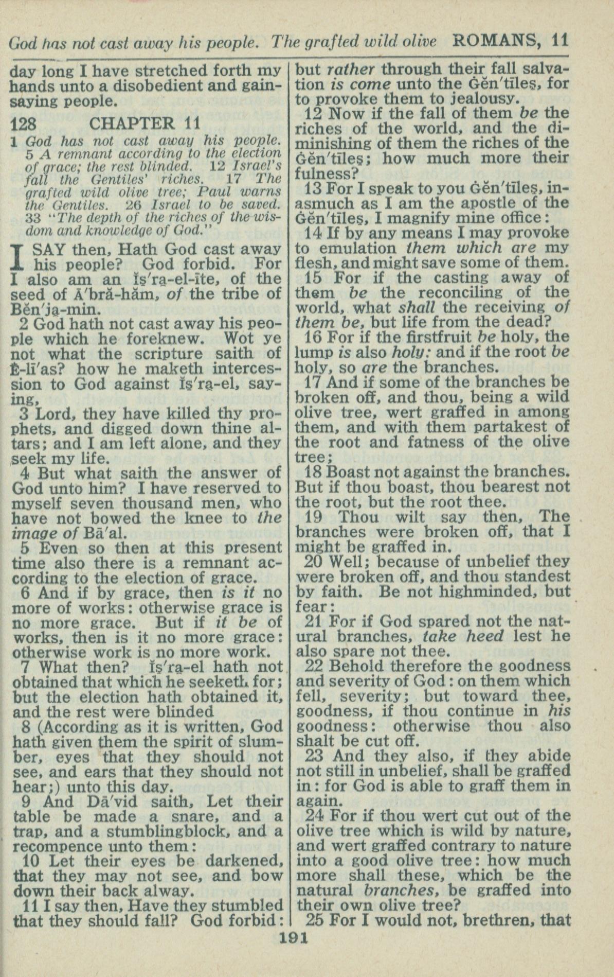 1946年King James Version 罗马书 11 章 1 节到 11 章 24 节