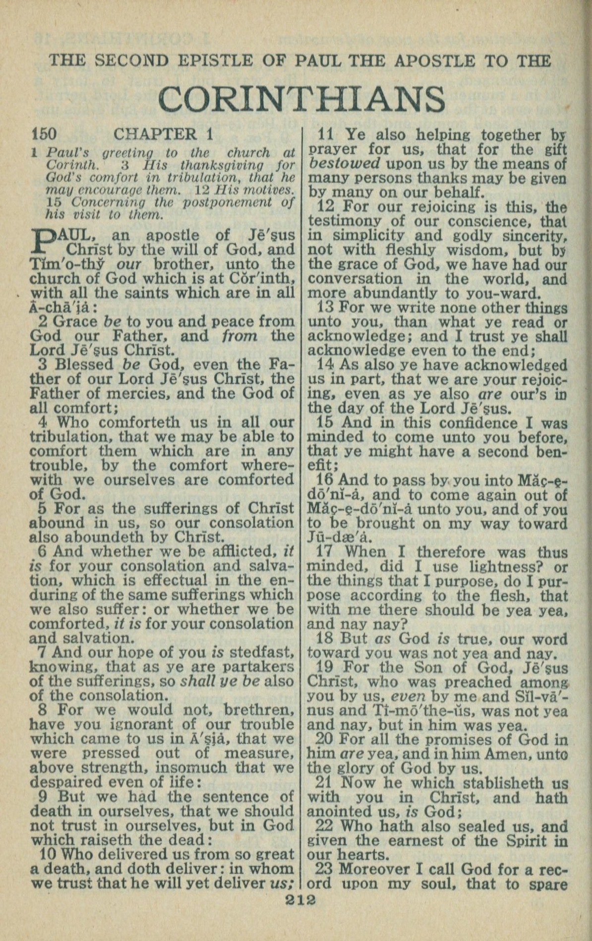 1946年King James Version 哥林多后书 1 章 1 节到 1 章 23 节
