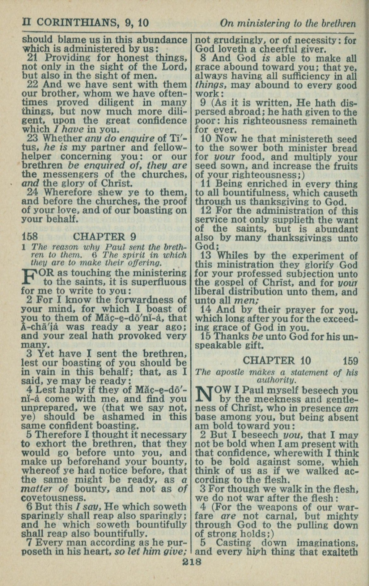 1946年King James Version 哥林多后书 8 章 21 节到 10 章 5 节