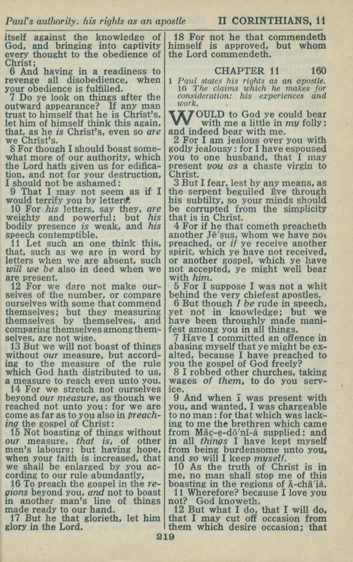 1946年King James Version 哥林多后书 10 章 6 节到 11 章 12 节