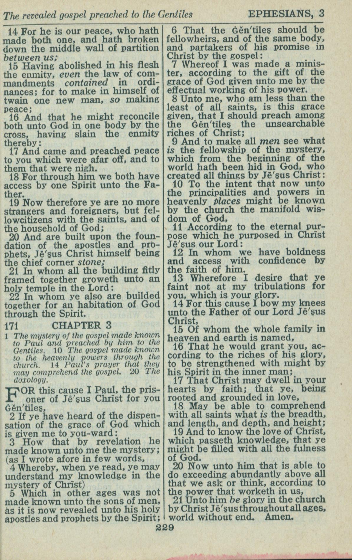 1946年King James Version 以弗所书 2 章 14 节到 3 章 21 节