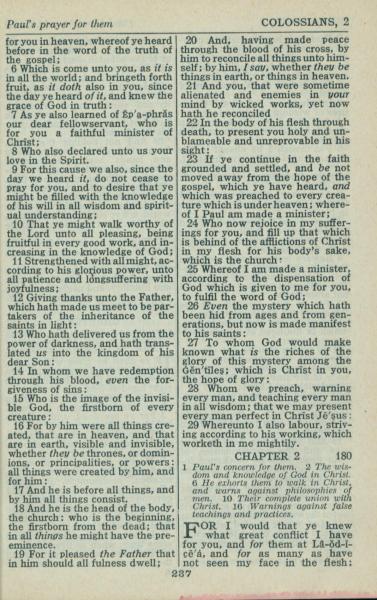 1946年King James Version 歌罗西书 1 章 6 节到 2 章 1 节