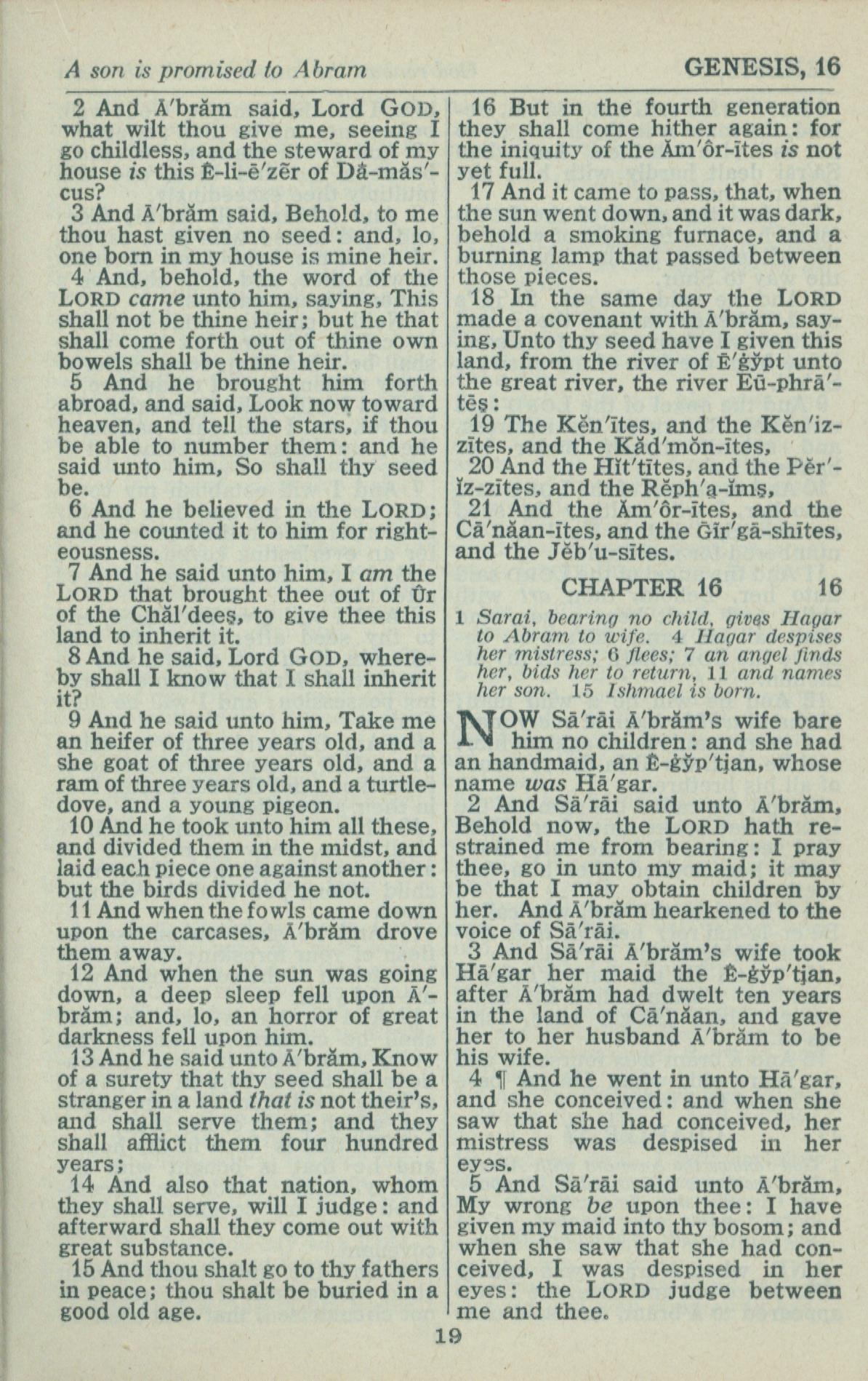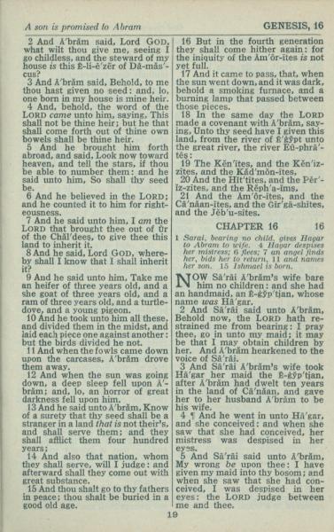 1946年King James Version 创世记 15 章 2 节到 16 章 5 节