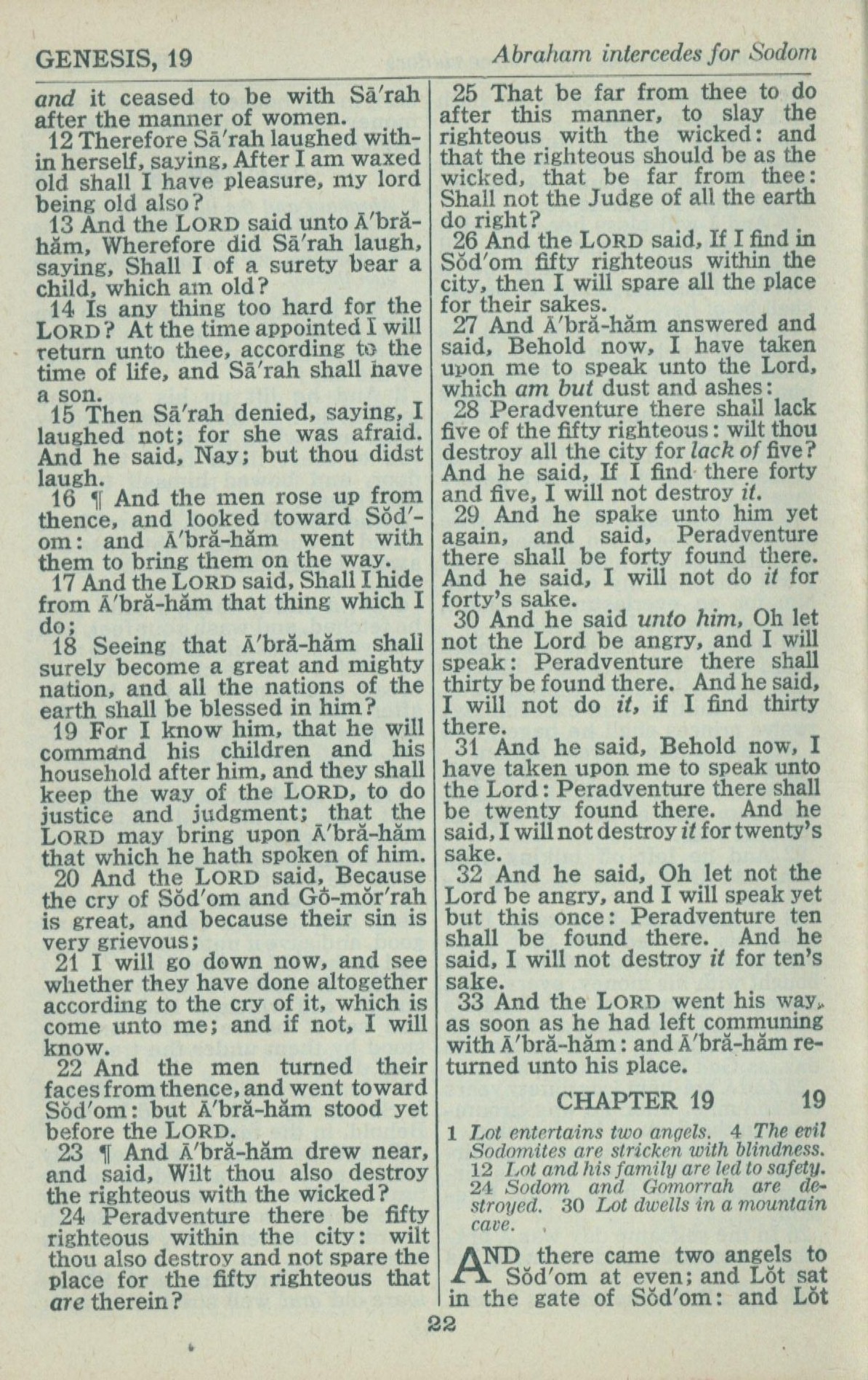 1946年King James Version 创世记 18 章 12 节到 19 章 1 节