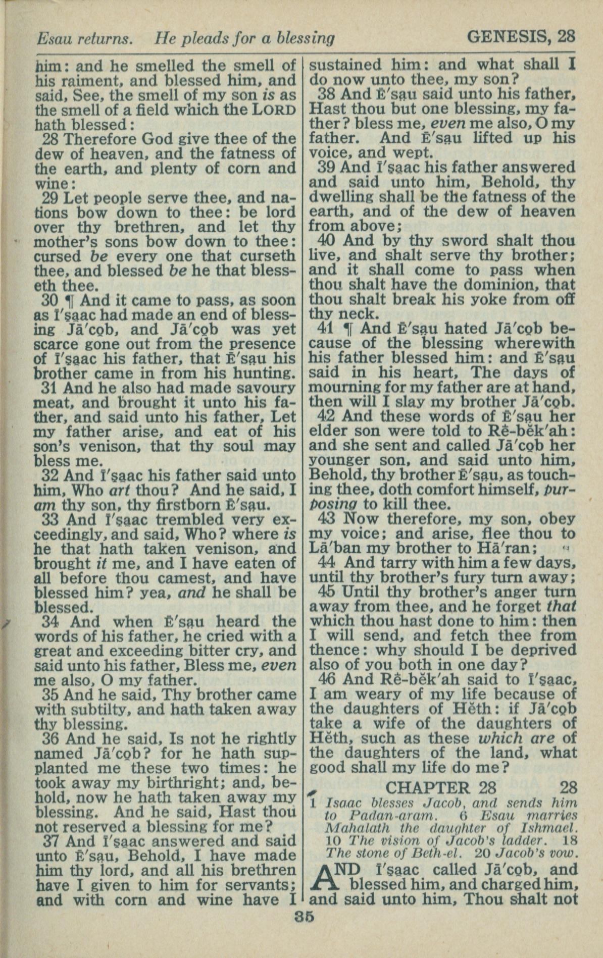 1946年King James Version 创世记 27 章 28 节到 28 章 1 节