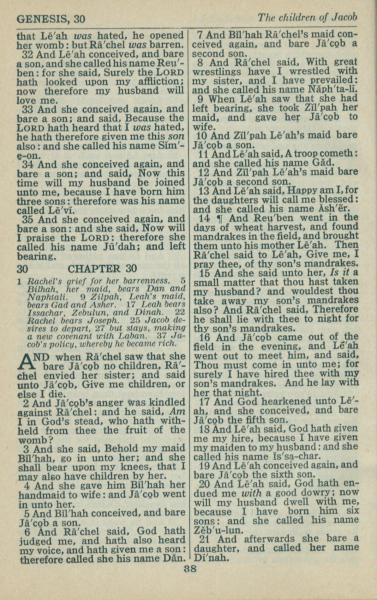 1946年King James Version 创世记 29 章 32 节到 30 章 21 节