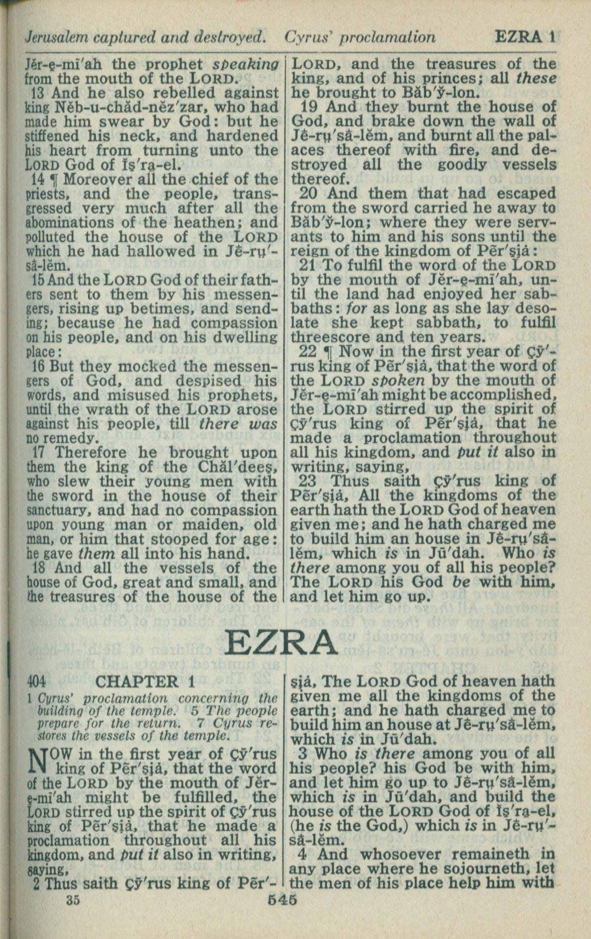1946年King James Version 以斯拉记 1 章 1 节到 1 章 4 节
