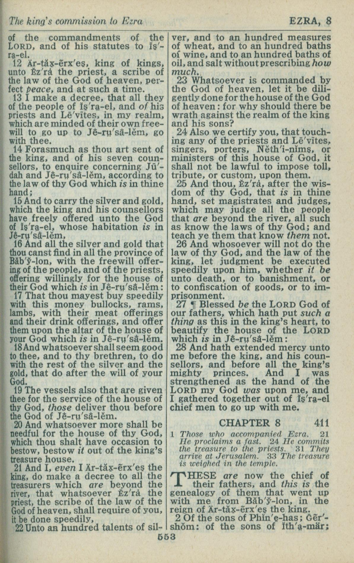 1946年King James Version 以斯拉记 7 章 12 节到 8 章 2 节