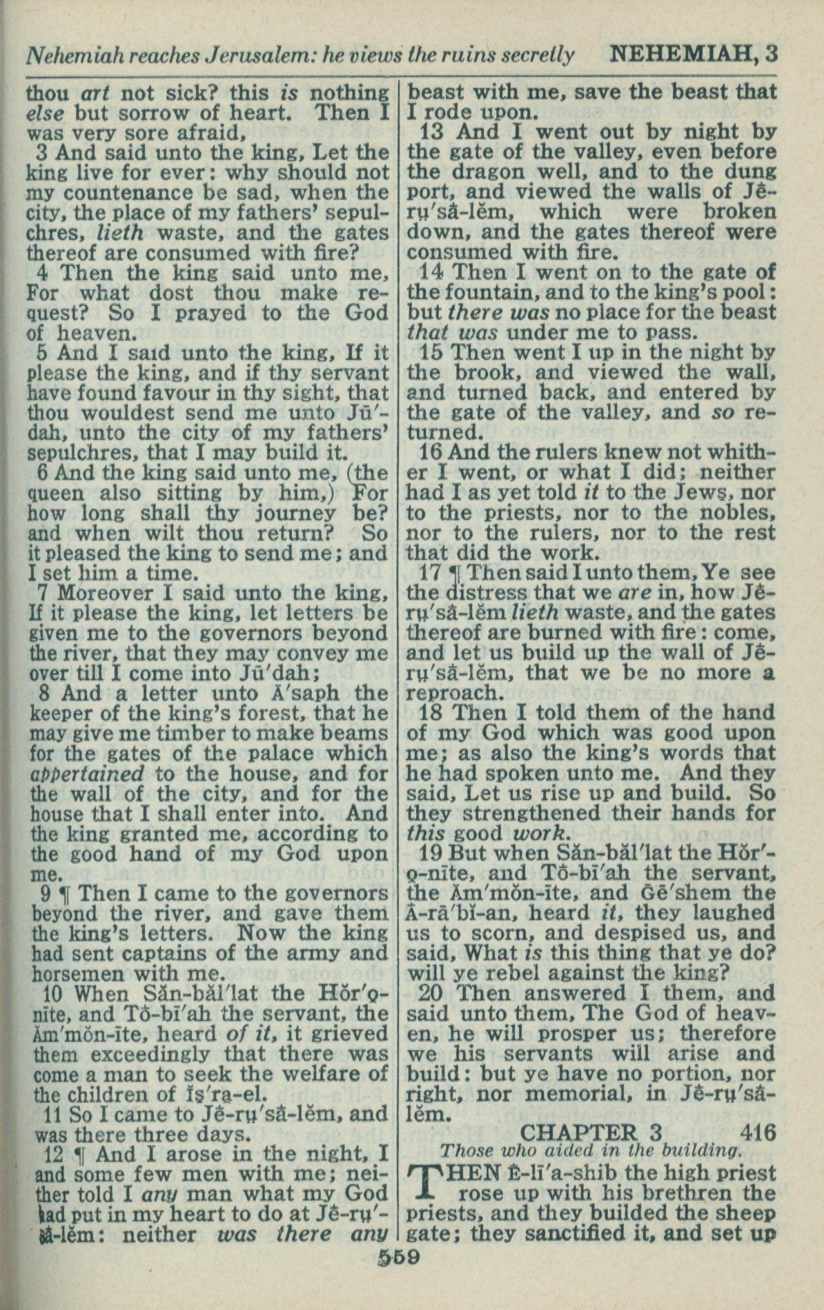 1946年King James Version 尼希米记 2 章 3 节到 3 章 1 节