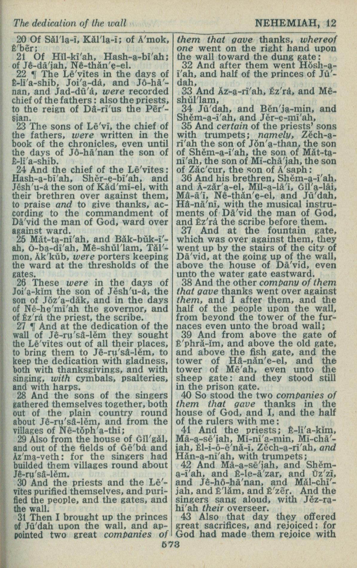 1946年King James Version 尼希米记 12 章 20 节到 12 章 43 节
