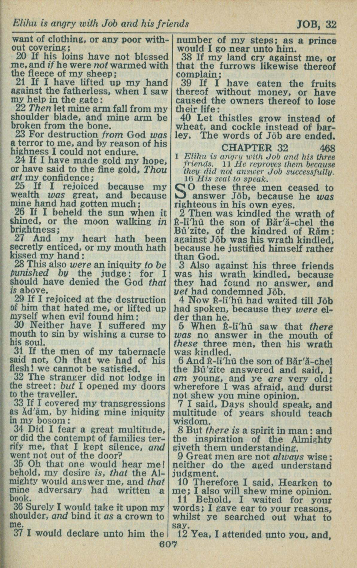 1946年King James Version 约伯记 31 章 20 节到 32 章 12 节