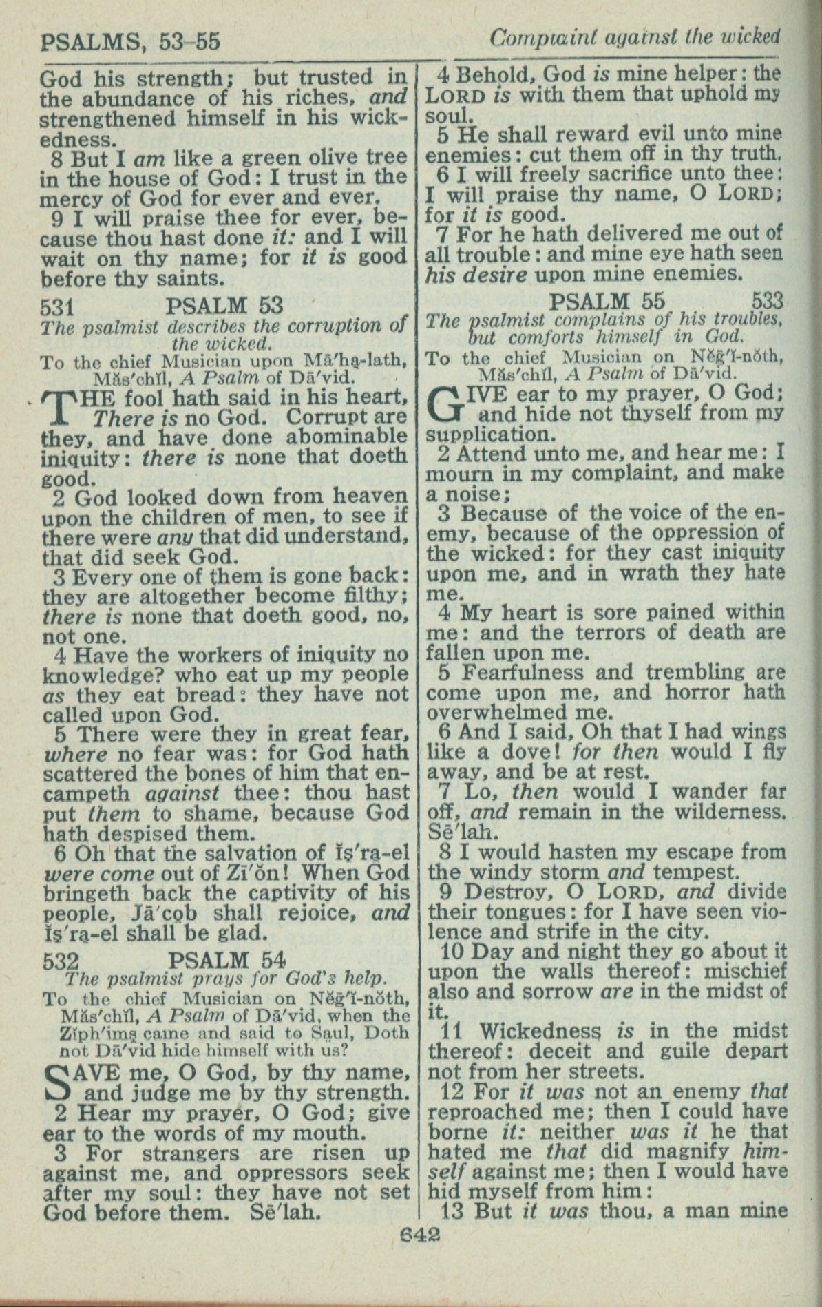 1946年King James Version 诗篇 52 章 8 节到 54 章 13 节