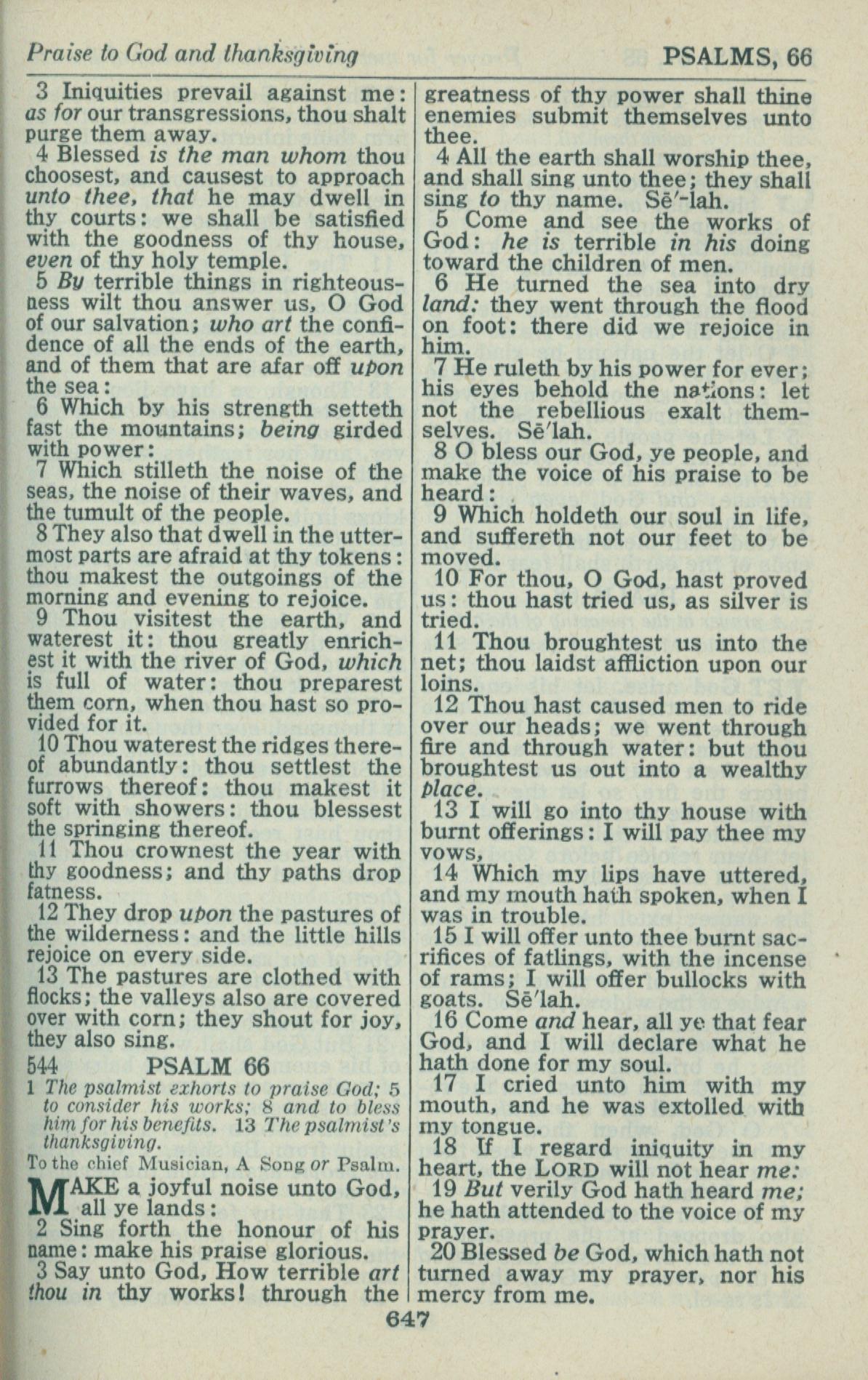 1946年King James Version 诗篇 65 章 3 节到 66 章 20 节