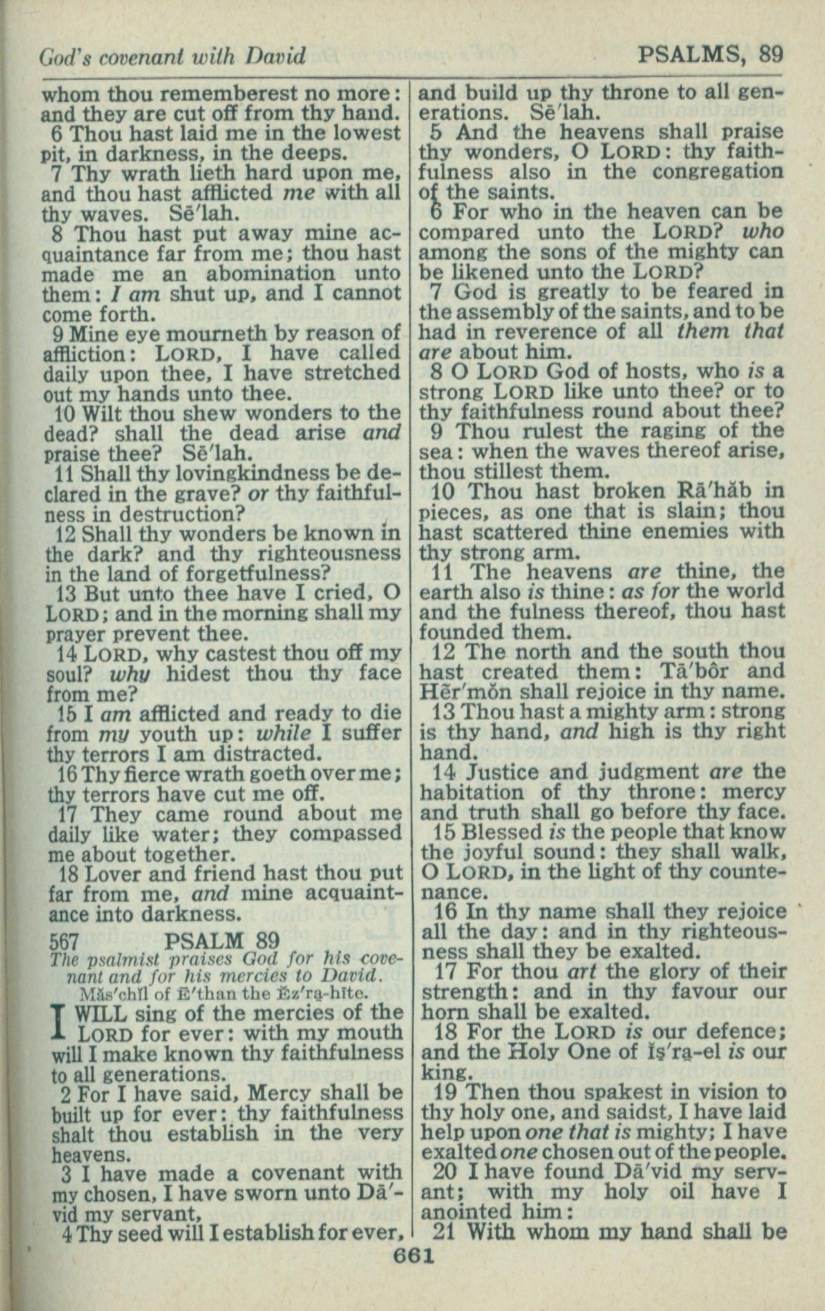 1946年King James Version 诗篇 88 章 6 节到 89 章 21 节