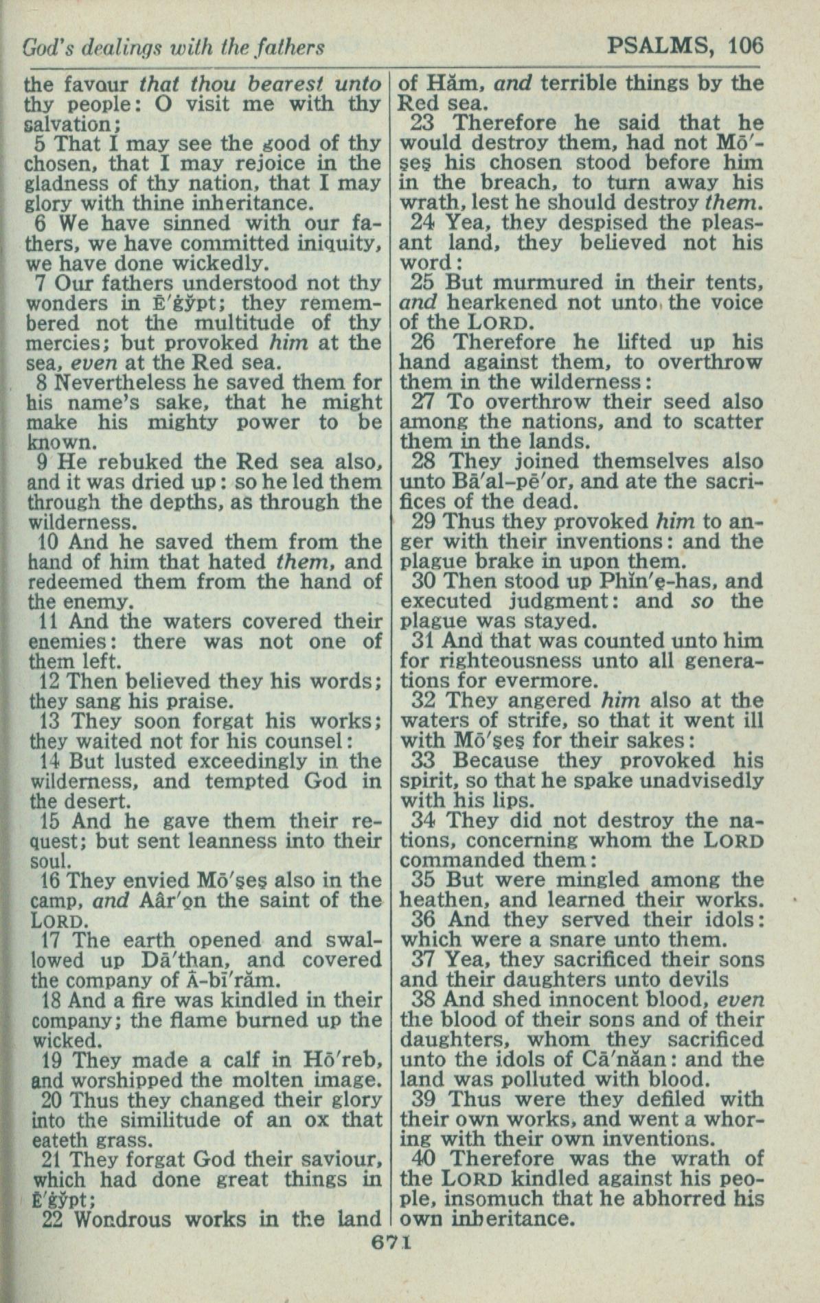 1946年King James Version 诗篇 106 章 5 节到 106 章 40 节