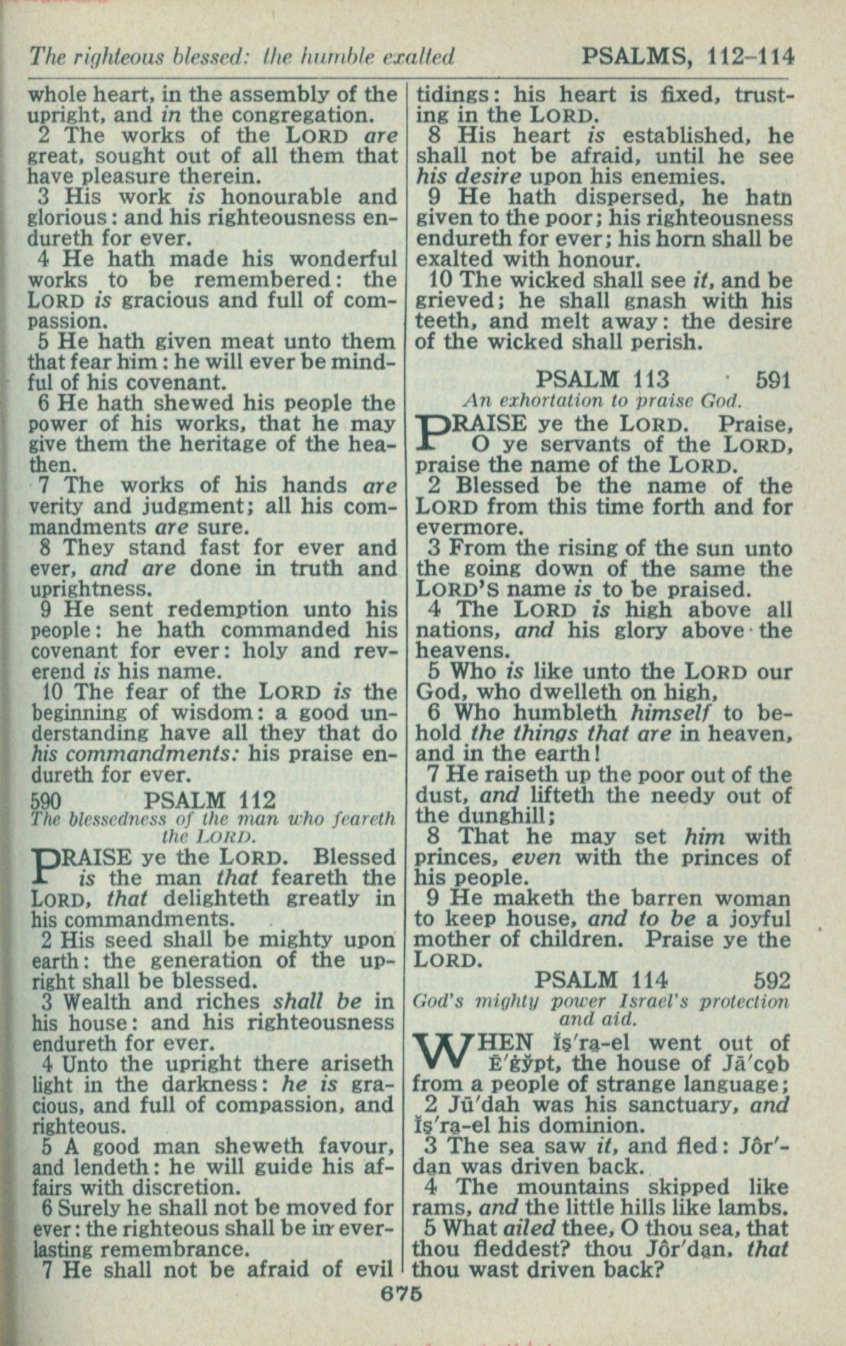 1946年King James Version 诗篇 111 章 2 节到 114 章 5 节