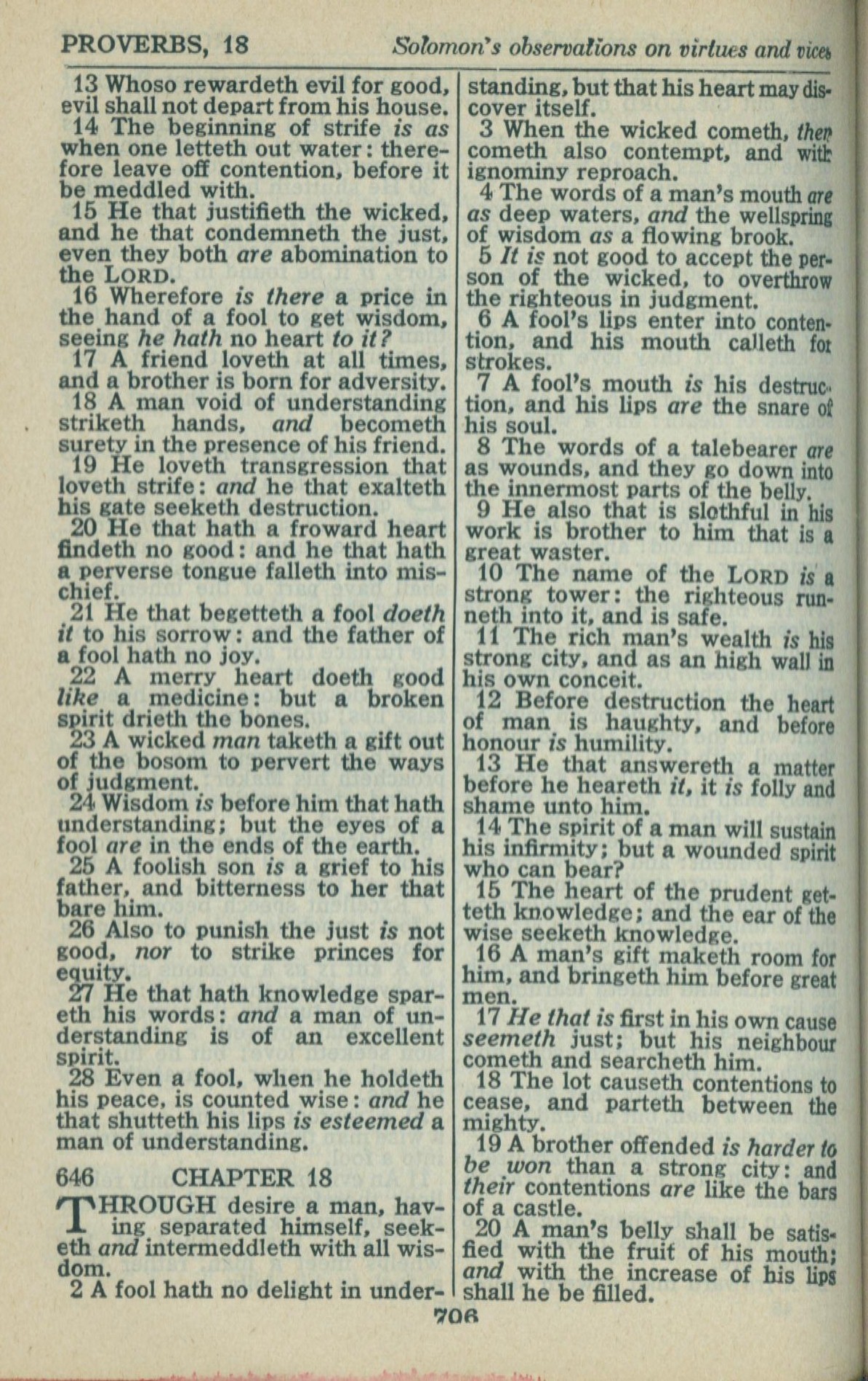 1946年King James Version 箴言 17 章 13 节到 18 章 20 节