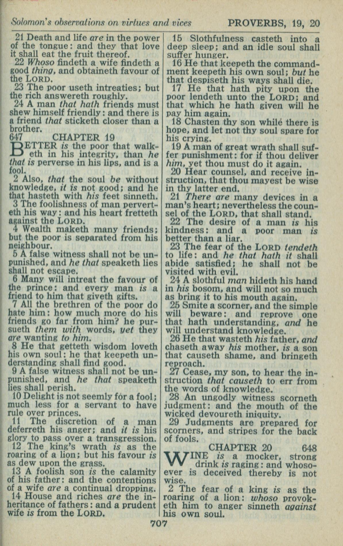 1946年King James Version 箴言 18 章 21 节到 20 章 2 节