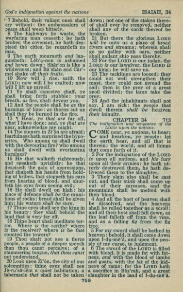 1946年King James Version 以赛亚书 33 章 7 节到 34 章 6 节