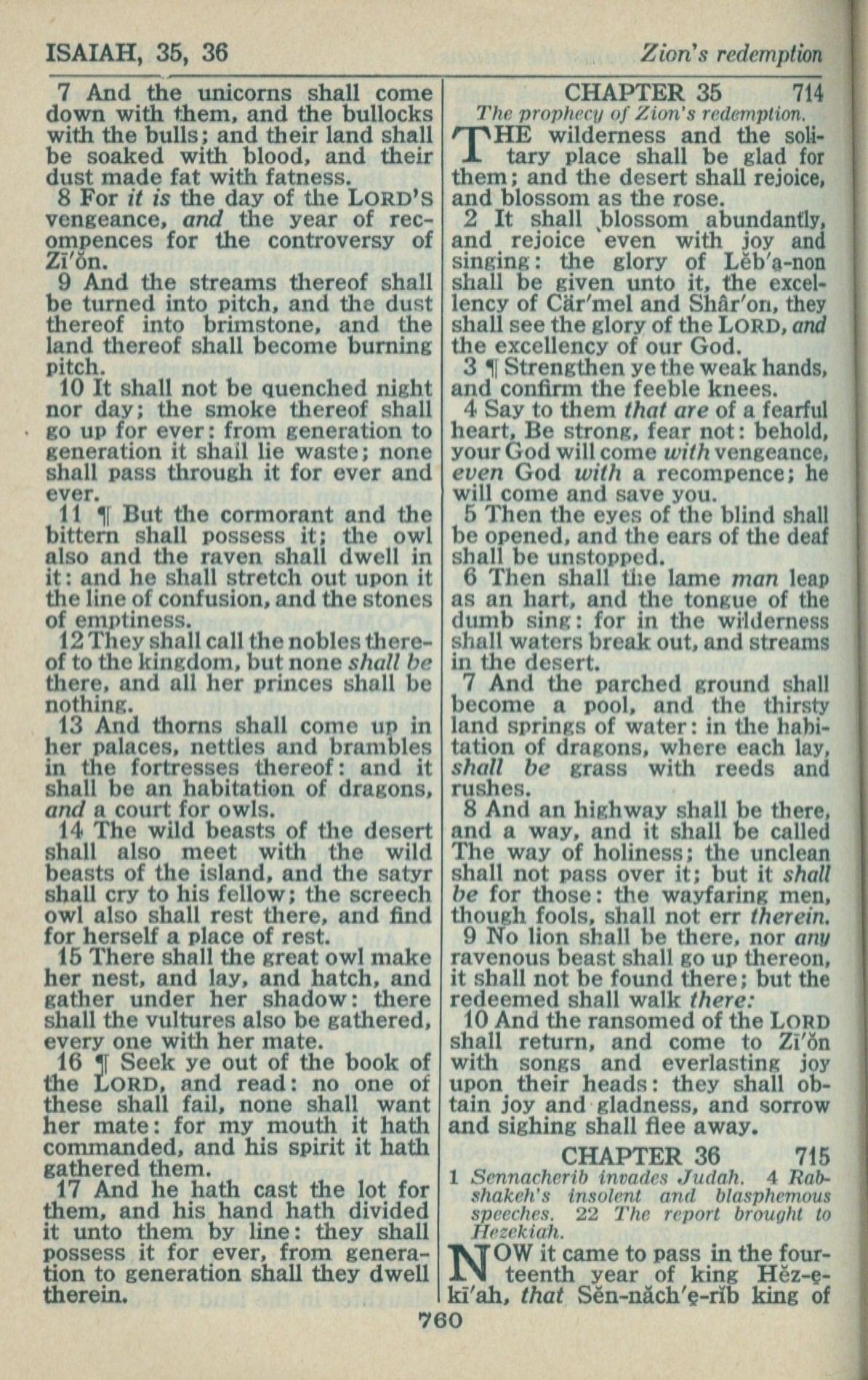 1946年King James Version 以赛亚书 34 章 7 节到 36 章 1 节