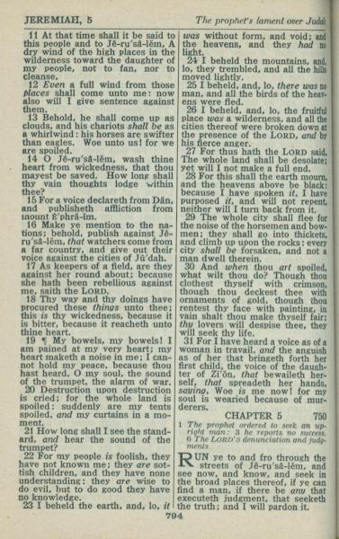 1946年King James Version 耶利米书 4 章 11 节到 5 章 1 节