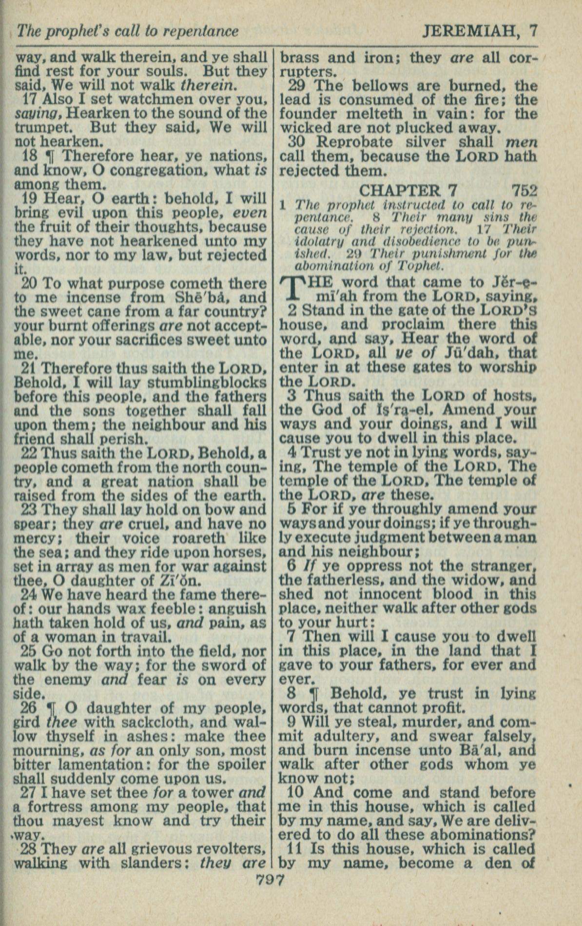 1946年King James Version 耶利米书 6 章 17 节到 7 章 11 节