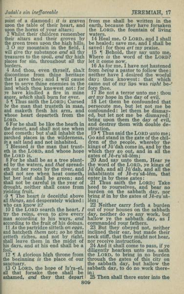 1946年King James Version 耶利米书 17 章 2 节到 17 章 25 节