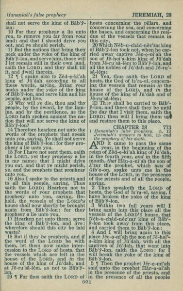 1946年King James Version 耶利米书 27 章 10 节到 28 章 5 节