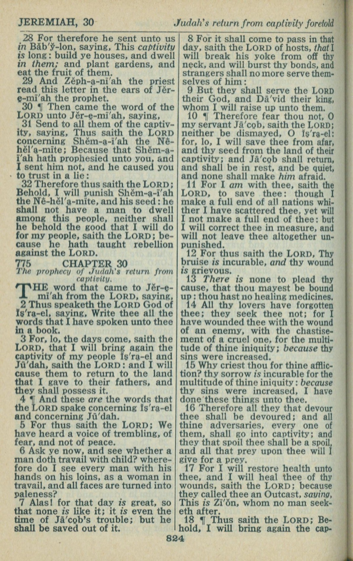 1946年King James Version 耶利米书 29 章 28 节到 30 章 18 节