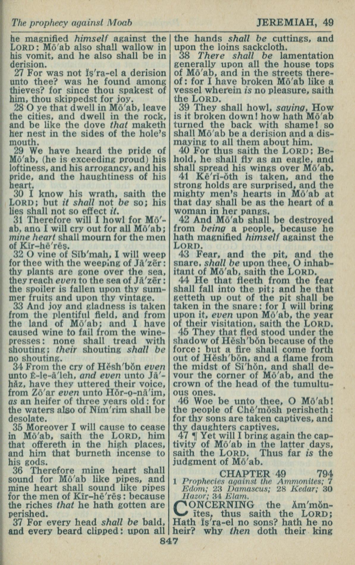 1946年King James Version 耶利米书 48 章 27 节到 49 章 1 节