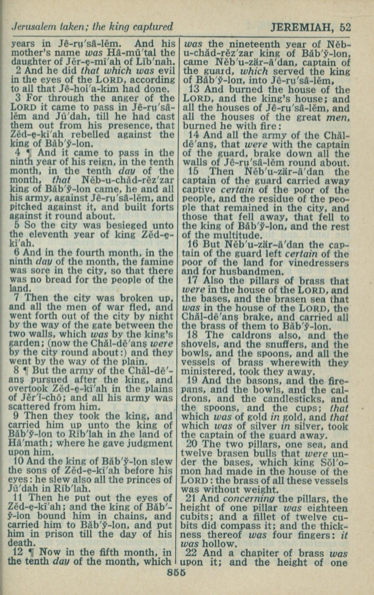1946年King James Version 耶利米书 52 章 2 节到 52 章 22 节