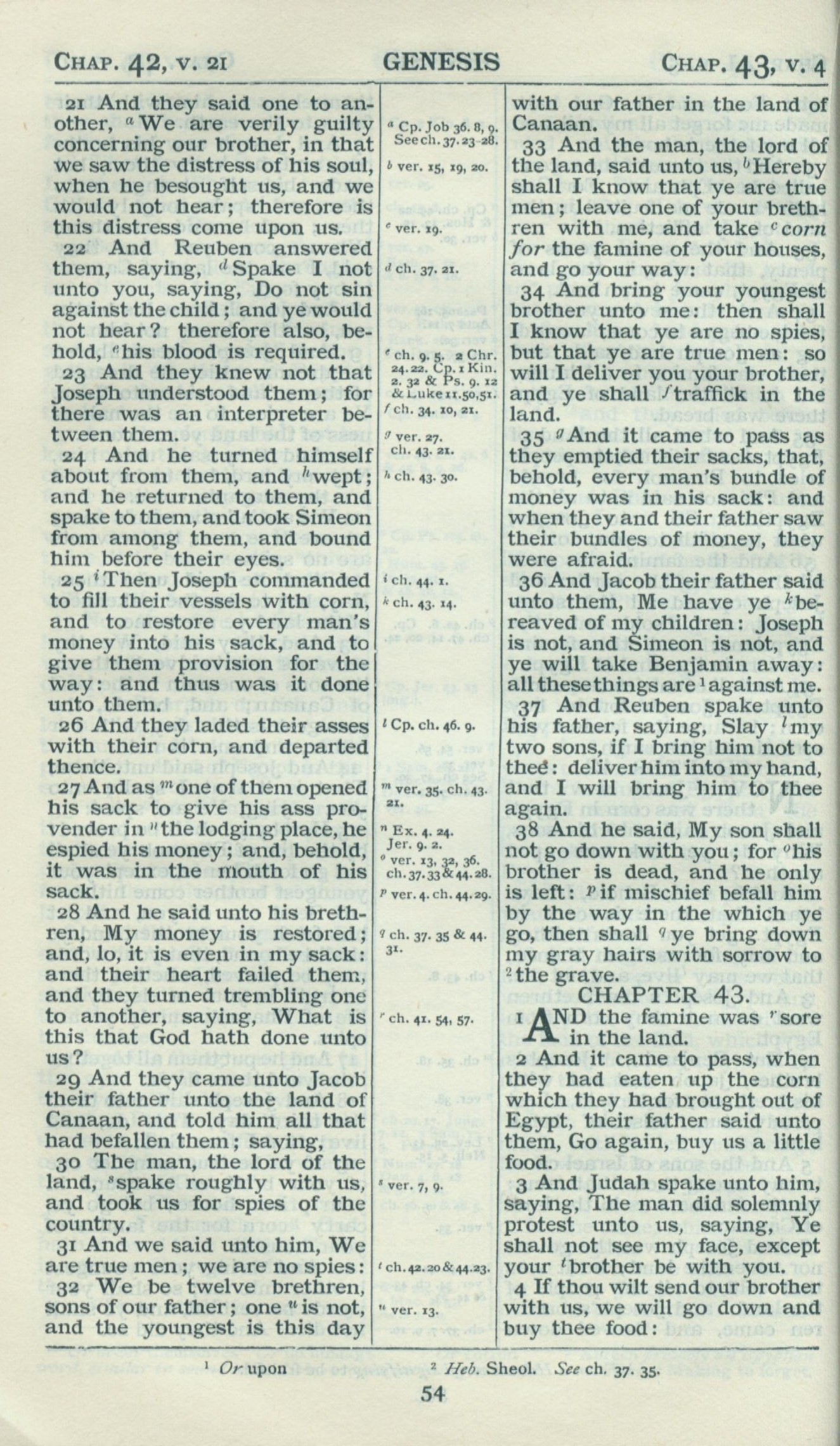 1898年Revised Version 创世记 42 章 21 节到 43 章 4 节