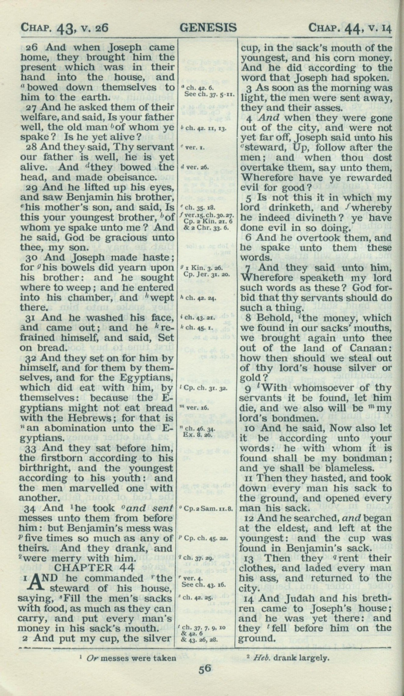 1898年Revised Version 创世记 43 章 26 节到 44 章 14 节
