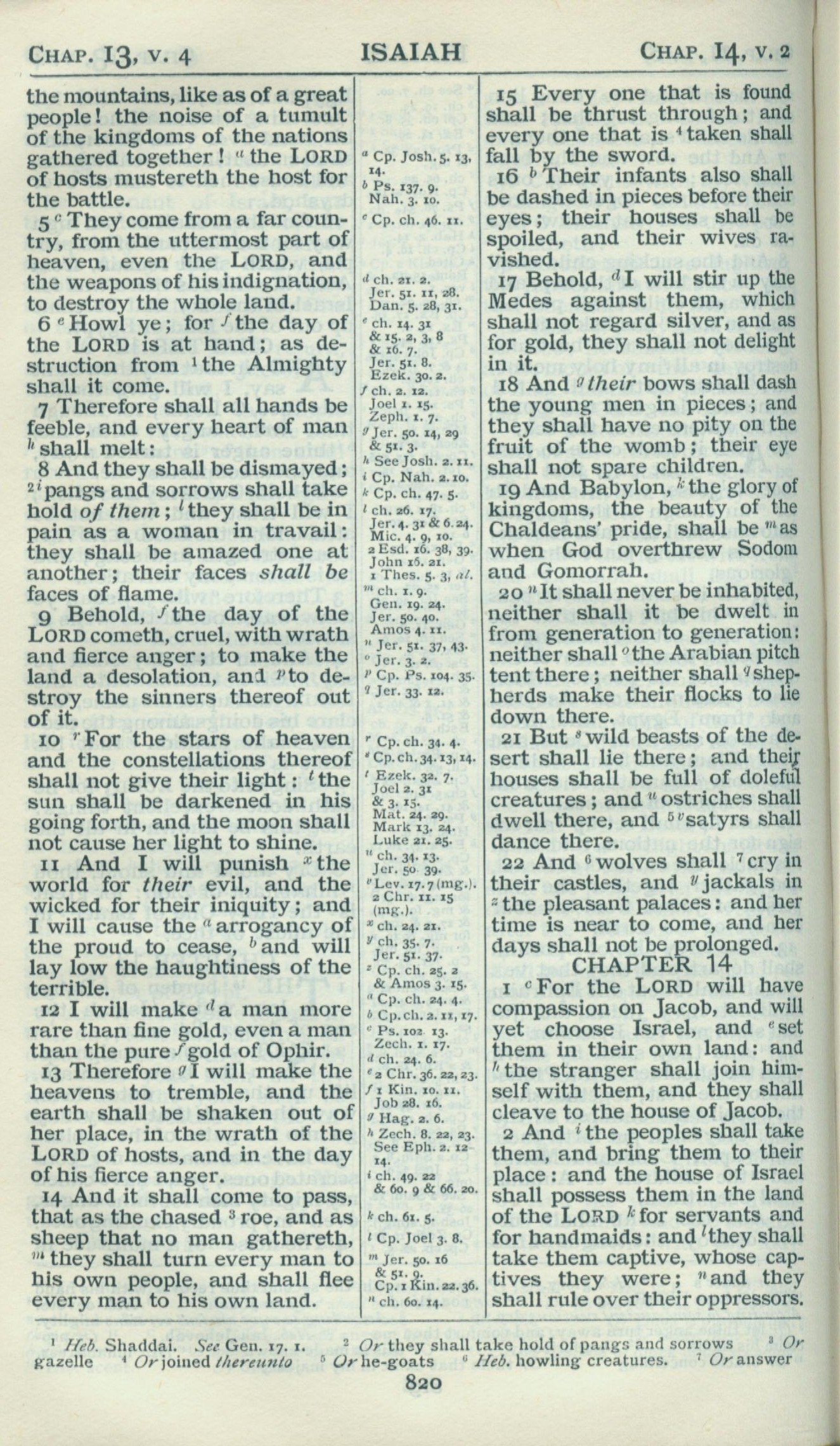 1898年Revised Version 以赛亚书 13 章 5 节到 14 章 2 节
