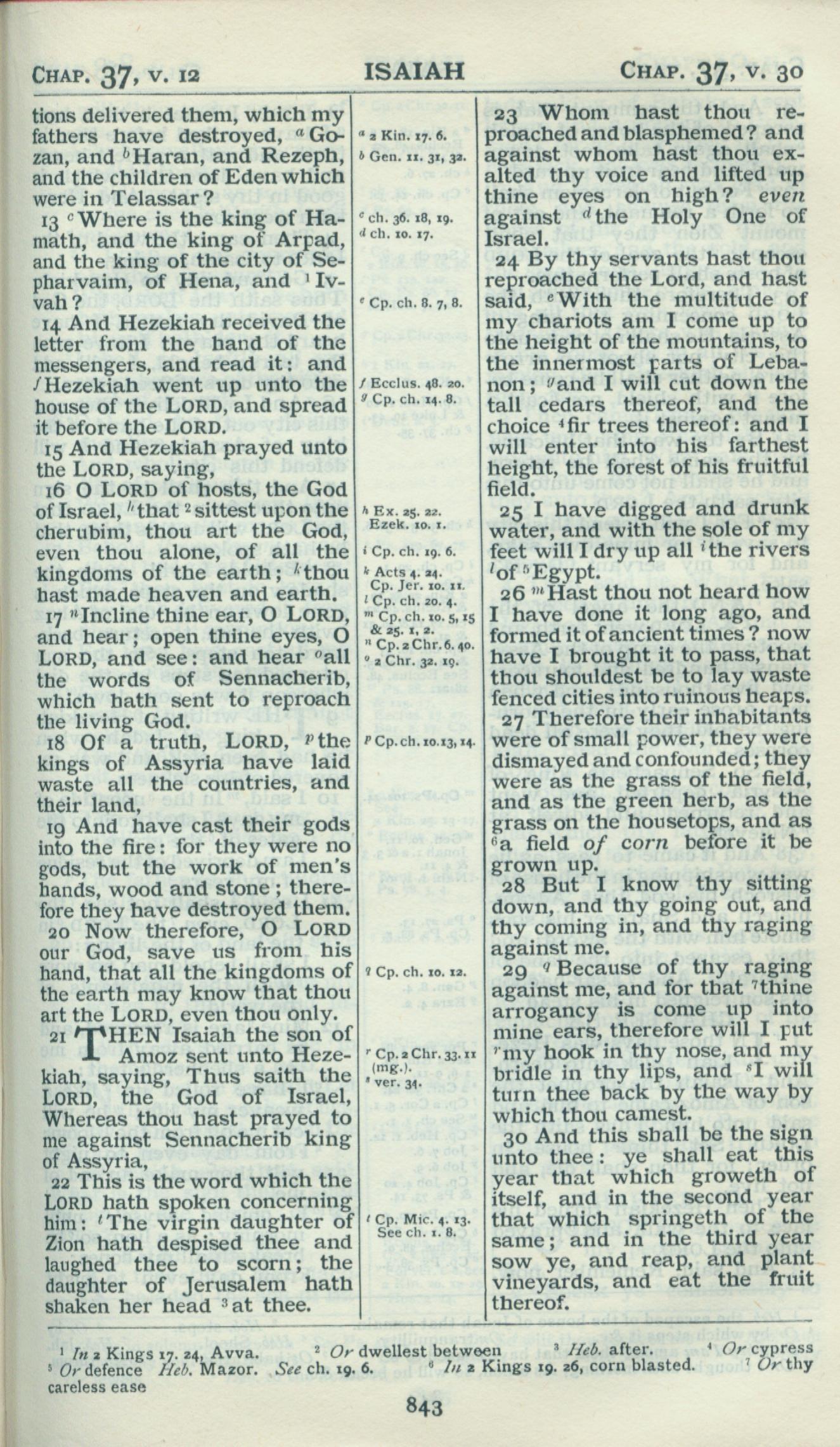1898年Revised Version 以赛亚书 37 章 13 节到 37 章 30 节