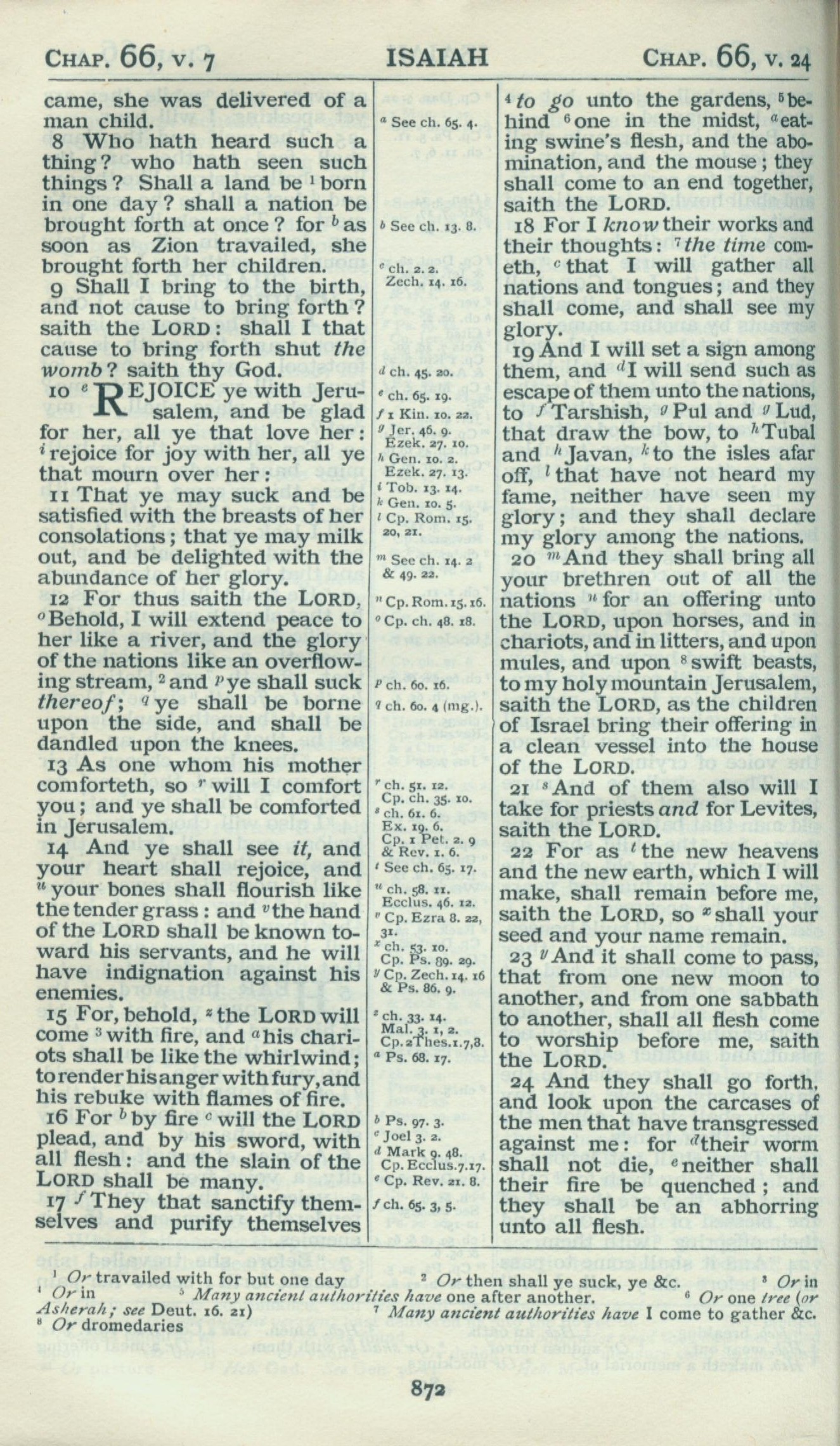 1898年Revised Version 以赛亚书 66 章 8 节到 66 章 24 节