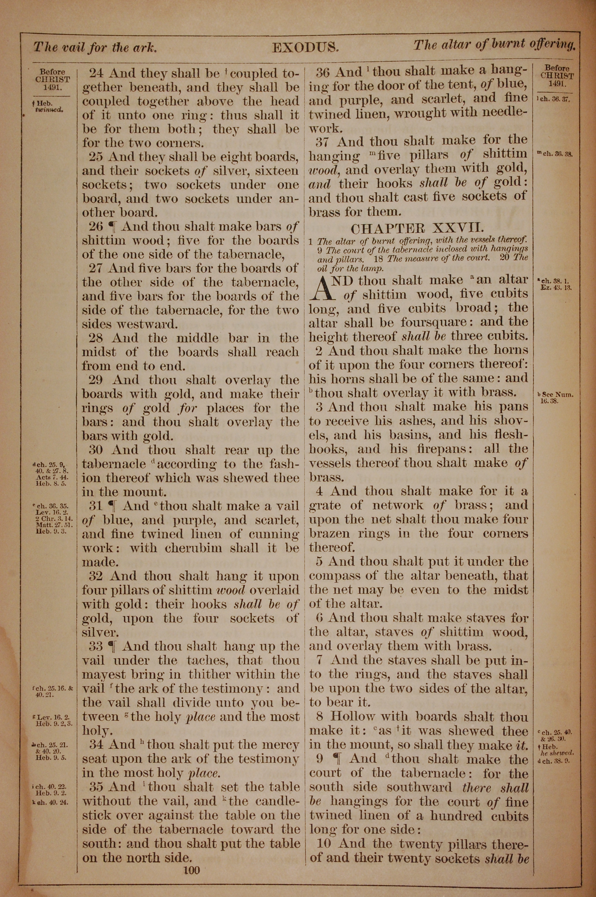 1882年Holy Bible 出埃及记 26 章 24 节到 27 章 10 节